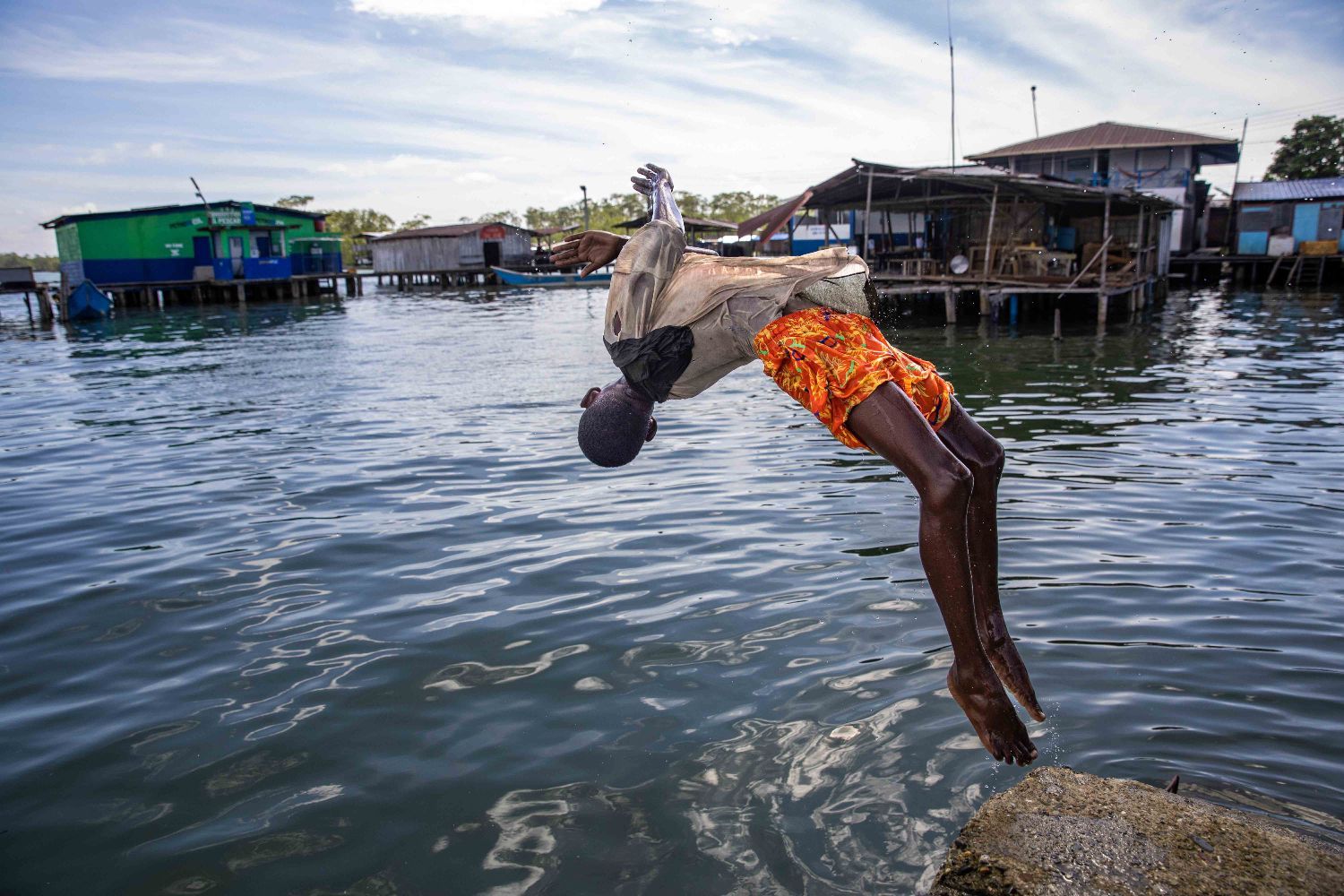 A young boy jumps into the sea from one of the piers on Bazán. The community has a close and profound bond with the sea from an early age. (Antonio Cascio) Read more about how conservation in Colombia is leaving behind local communities in an article published this week by Natalia Torres Garzón and Antonio Cascio.
