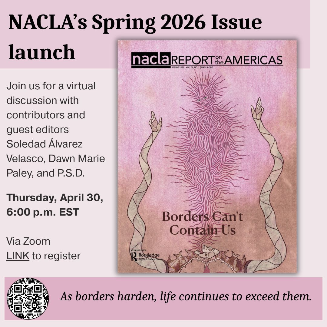 The latest issue of the NACLA Report, "Borders Can't Contain Us," examines the consolidation of a hemispheric bordering regime whose reach now extends far beyond any single boundary line, tracing how border violence has moved from the margins to the center of political life across the Americas.